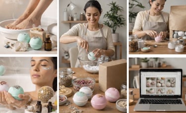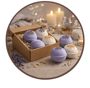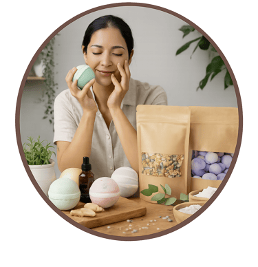 Crea sales y bombas de baño terapéuticas exclusivas,