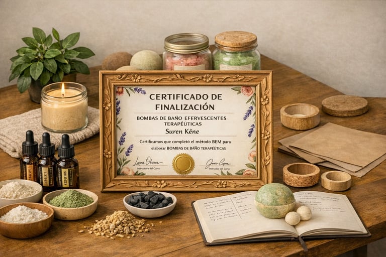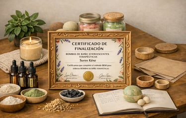 Este certificado te acredita como Especialista en Sales y Bombas de Baño Terapéuticas con Aromaterapia Natural, aumentando tu credibilidad, autoridad y confianza frente a tus clientes y fortaleciendo tu marca profesional.