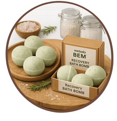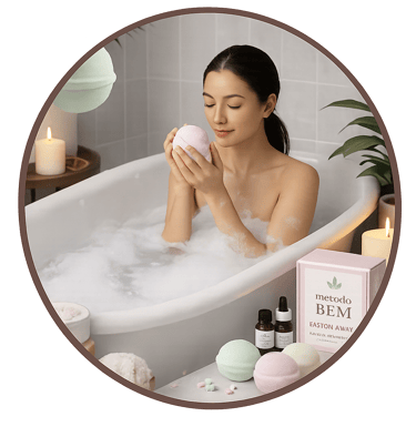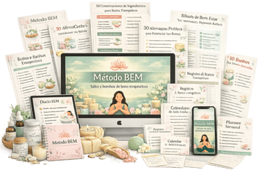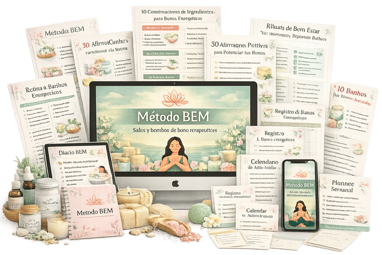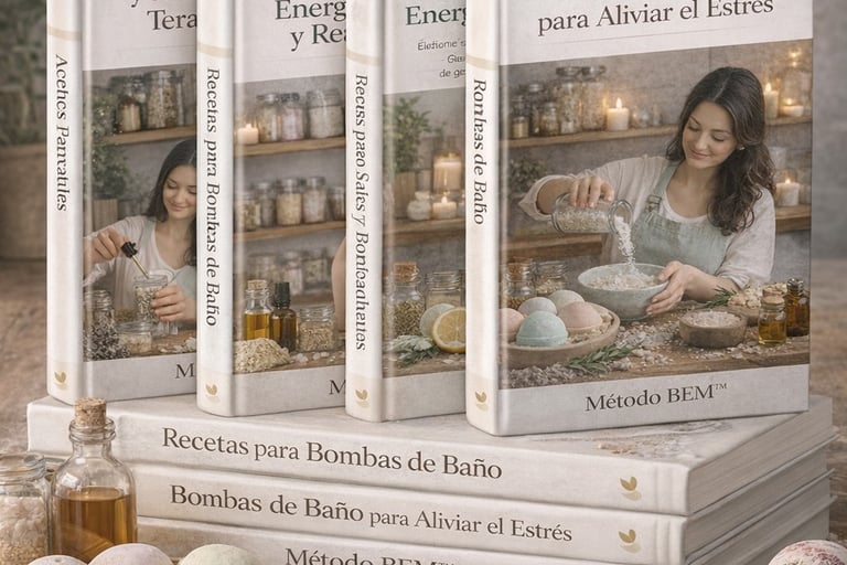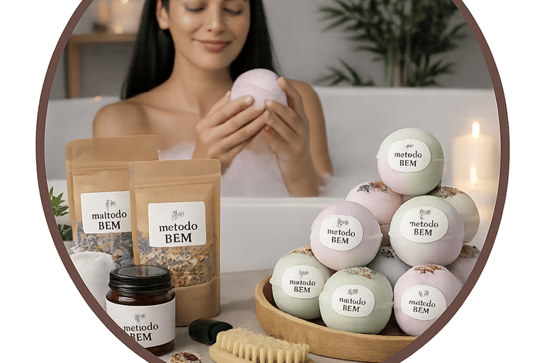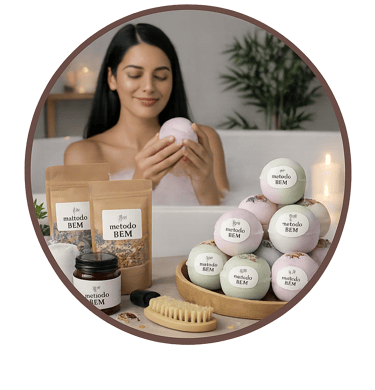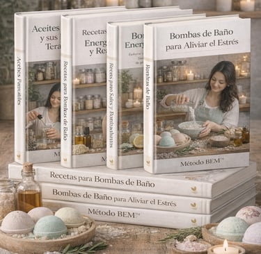 El Método BEM™ es el sistema que te toma de la mano y te acompaña paso a paso para crear sales y bombas de baño terapéuticas con propósito, transformarlas en una marca propia y convertir tu talento en ingresos reales desde casa..