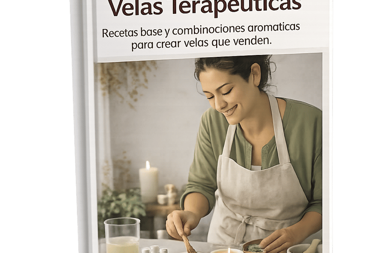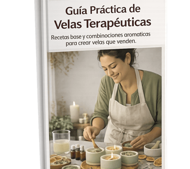 Mini ebook con recetas base y combinaciones aromáticas para crear velas terapéuticas que venden, ideales para complementar tu línea de sales y bombas de baño.